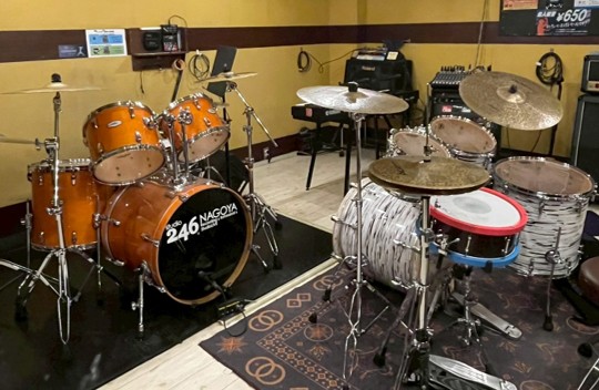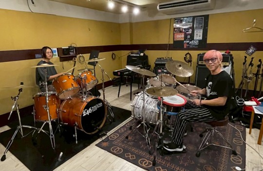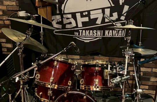 レッスンではドラムセットを2台ご用意。講師と一緒に同じフレーズを叩きながら進めるので、わかりやすく、リズム感も身につきやすい環境です。